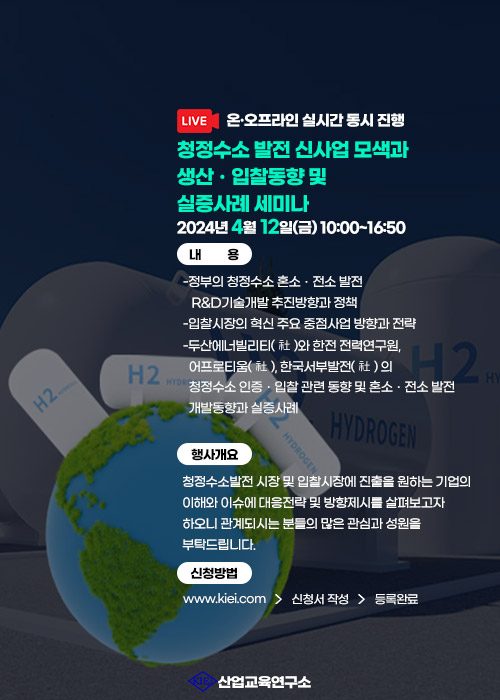 [산업교육연구소] 04.12) 청정수소 발전 신사업 모색과 생산ㆍ입찰 동향 및 실증사례 세미나