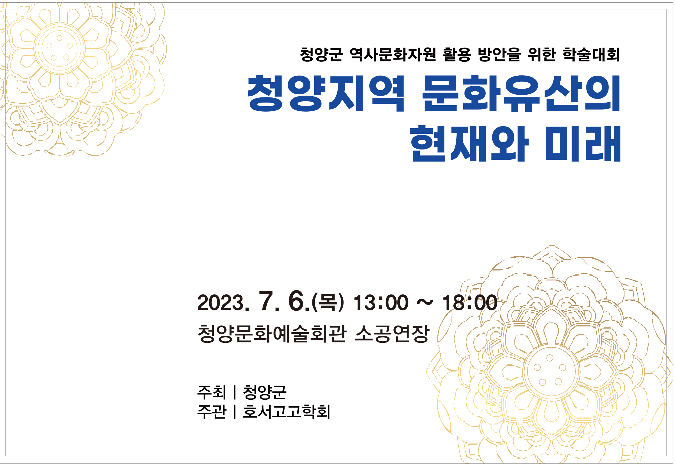 호서고고학회와 청양군에서 '청양지역 문화유산의 현재와 미래'라는 주제로 학술대회를 개최합니다.