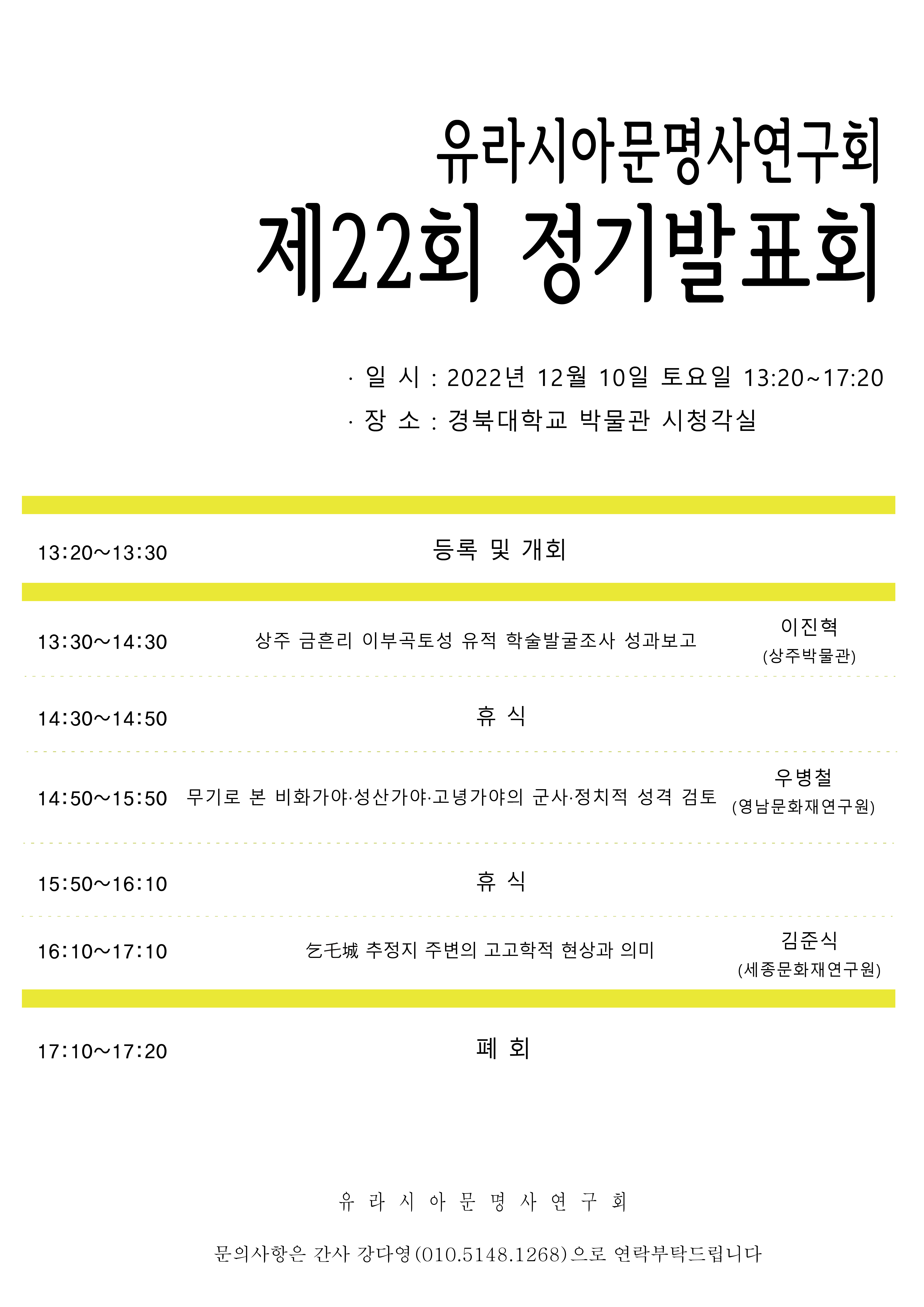 2022년 12월 10일 토요일, 유라시아문명사연구회 제22회 정기발표회가 진행될 예정입니다.