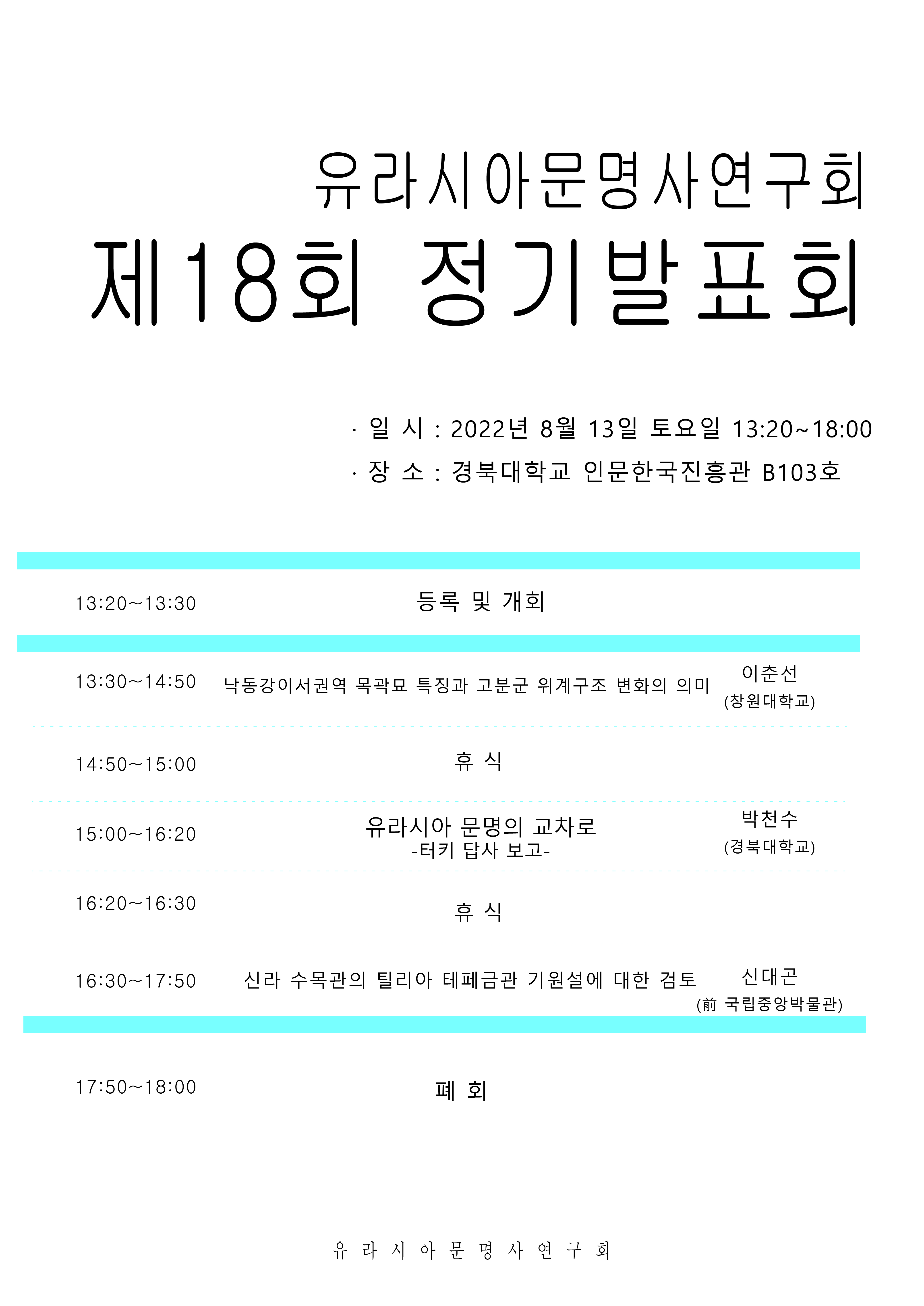 2022년 8월 13일 토요일, 〈유라시아문명사연구회 제17회 정기발표회〉를 개최하고자 합니다.