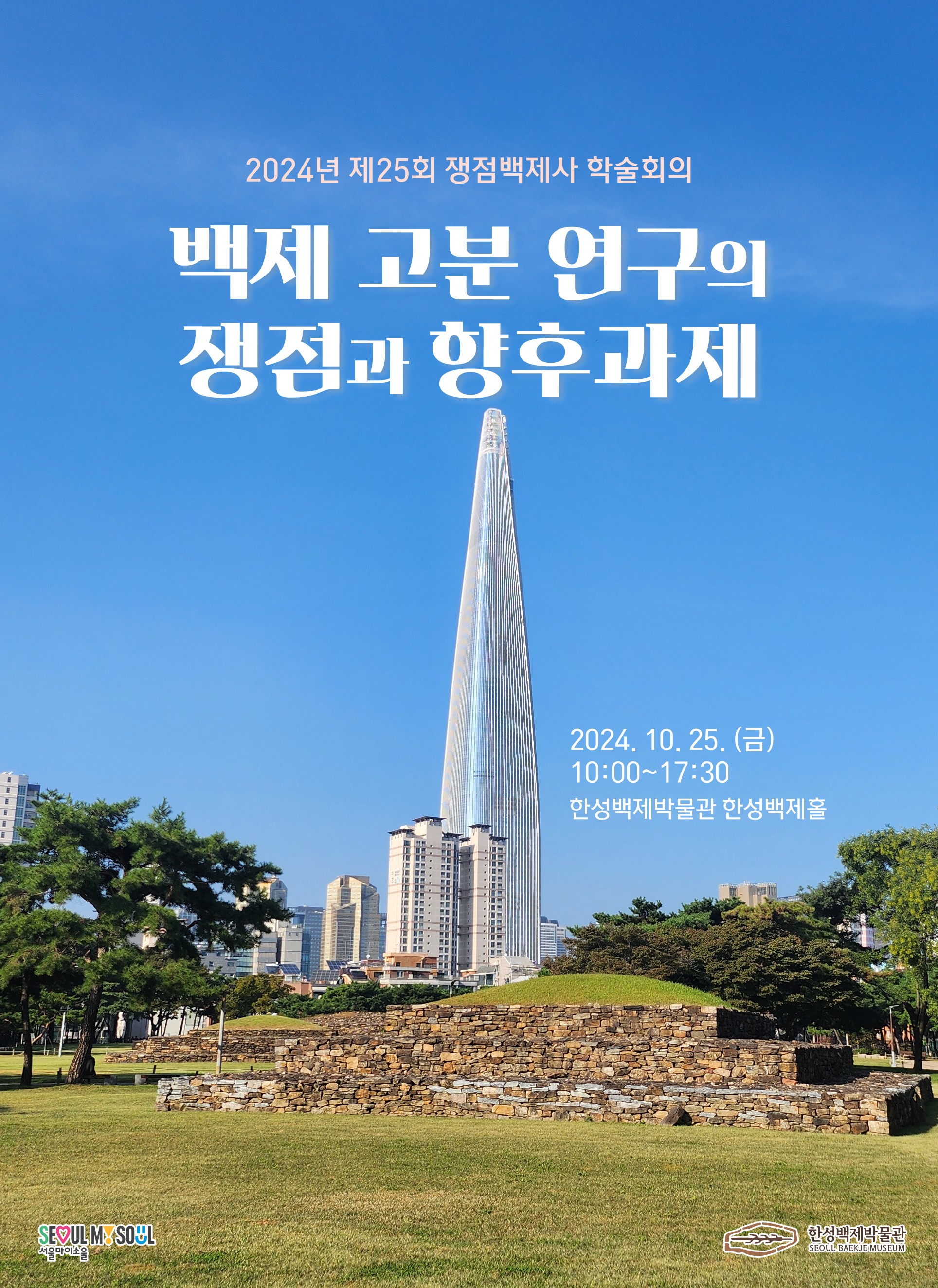 한성백제박물관 백제학연구소는 백제 고고·역사의 중요 현안과 쟁점 사안을 주제로 선정하여 집중 토론하는 <쟁점백제사 학술회의>를 매년 두차례 개최하고 있습니다이번 25회 쟁점백제사 학술회의는 백제 고분 연구의 쟁점과 향후 과제라는 주제로 개최합니다.