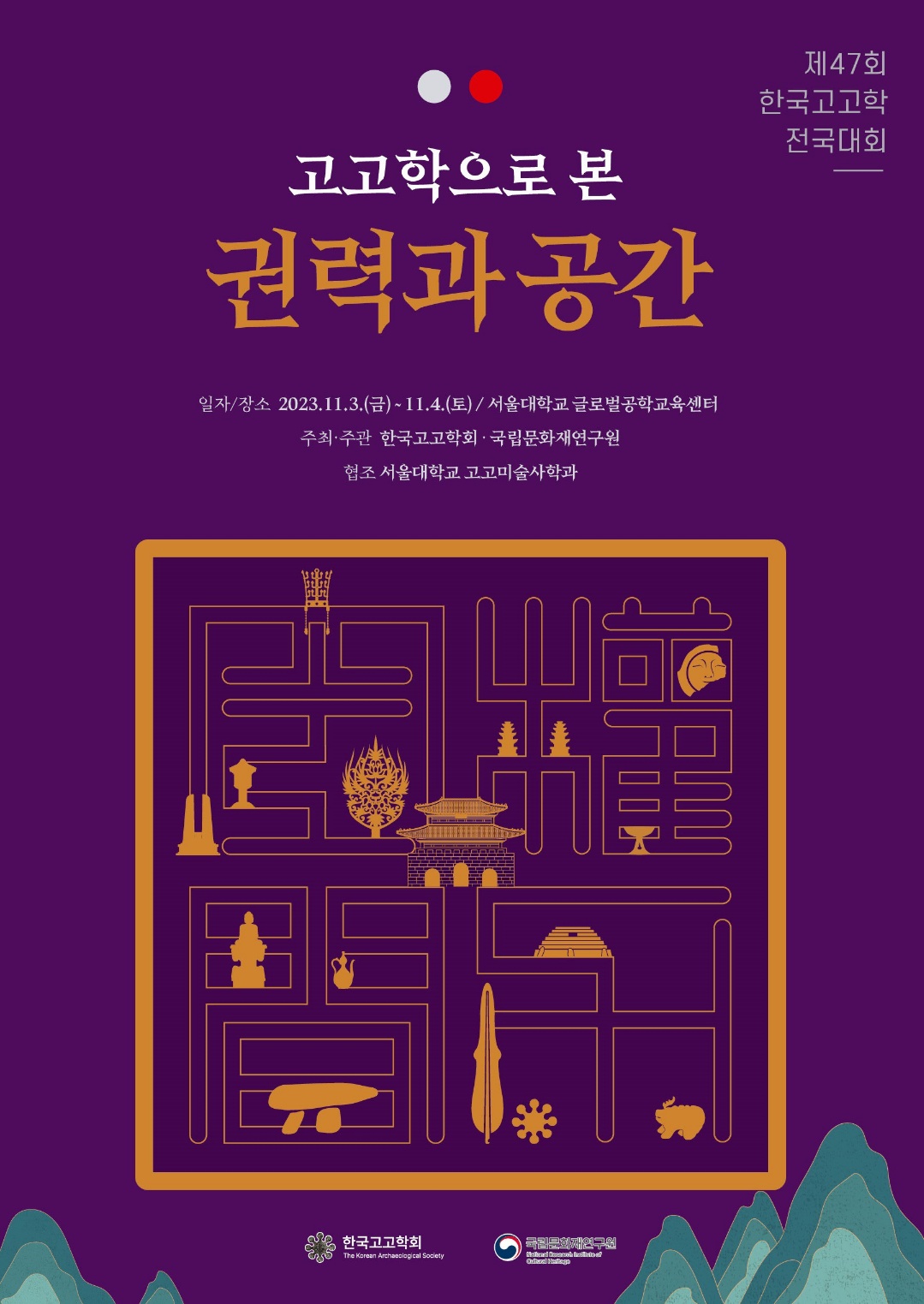 한국고고학회와 국립문화재연구원이 공동으로 주최하는 제47회 한국고고학전국대회가 고고학으로 본 권력과 공간으로 11월 3~4일 서울대학교 글로벌공학교육센터에서 개최됩니다.
