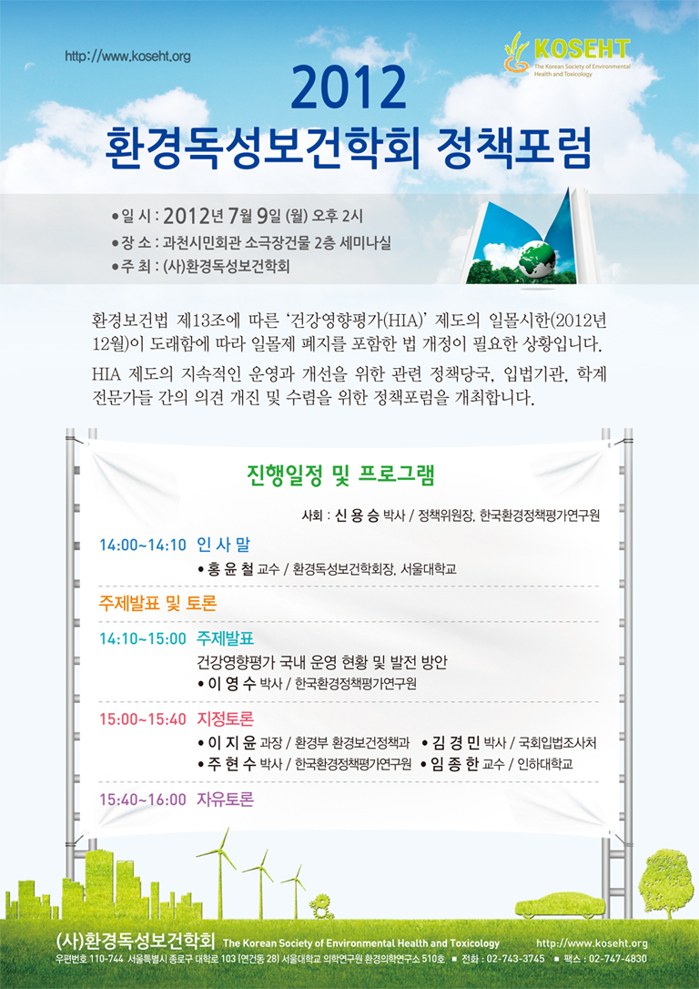 2012 환경독성보건학회 정책포럼 일정 및 프로그램 안내