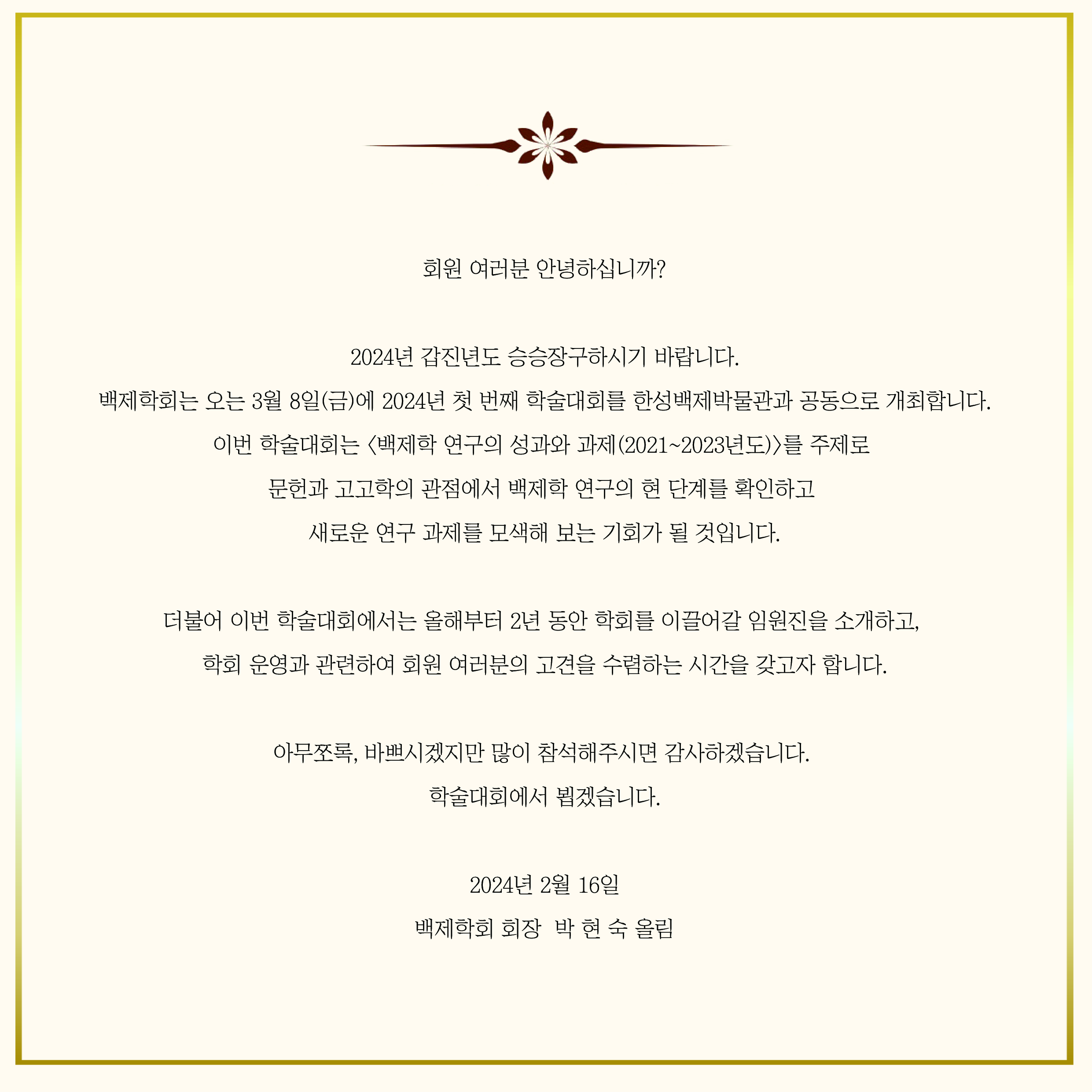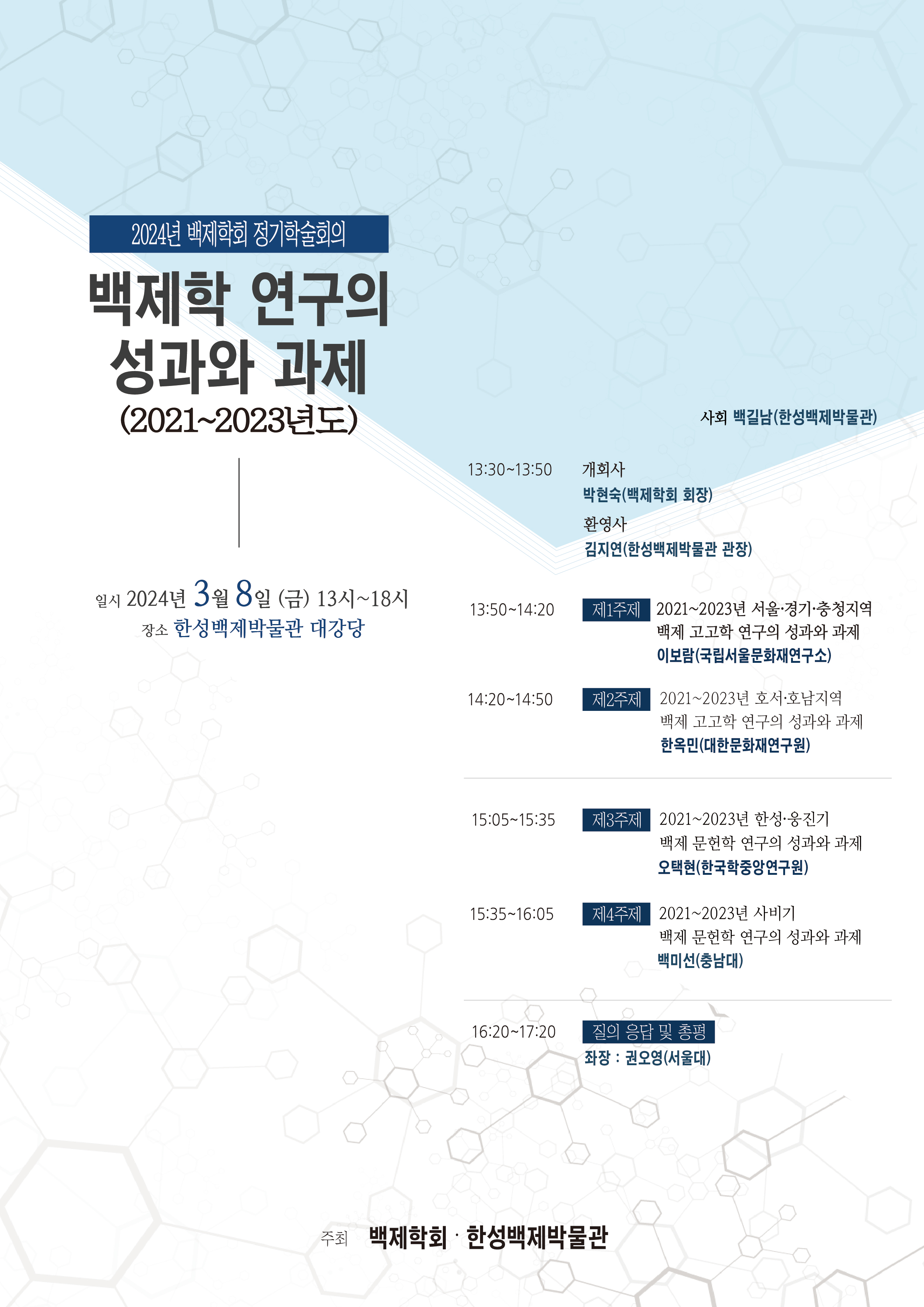 백제학회에서는 한성백제박물관과 공동으로 2024년 첫 번째 학술대회를 다음과 같이 개최합니다.