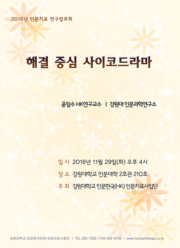 주최 : 강원대학교 인문과학연구소 인문한국(HK) 인문치료사업단