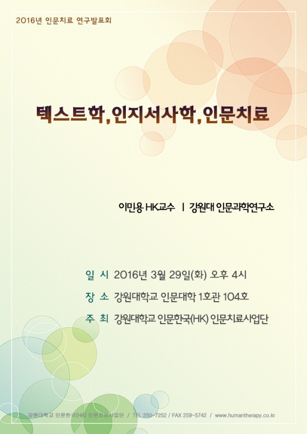 주최 : 강원대학교 인문과학연구소 인문한국(HK) 인문치료사업단