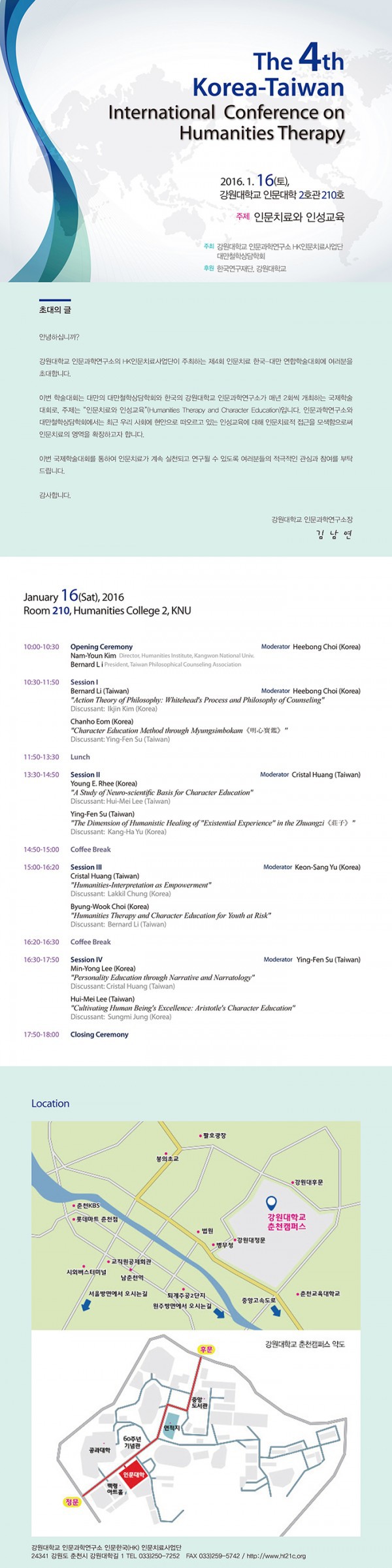 제4회 인문치료 한국-대만 연합학술대회 안내